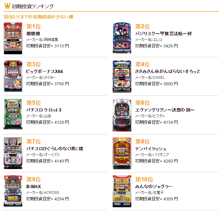 《初当りまでの投資が少ない機種ランキング》