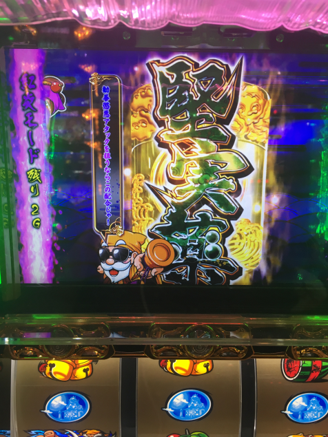 20Gを無事に駆け抜けまして、すぐにダブルルーレット2個目のやつのCZの突入画面でスイカを引いたら印籠閉まってAT確定!