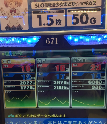 この日は朝から設定狙い。まどマギ2へ。マジで大回収やね。まどマギ2北斗修羅が駄目駄目だったから。