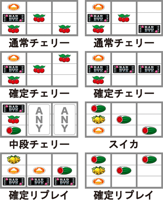 ※確定役=確定チェリー、中段チェリー、確定リプレイ1、確定リプレイ2