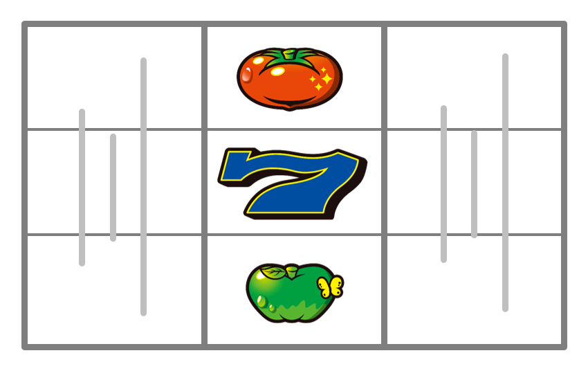 連チャン状態中にトマトチャンス1枚役を引いた場合はトマトが上段にしかテンパイしません。もし、左リールの択に正解していた場合は左リールの中段にトマト(BAR)が停止します。故に、それ以外のラインにトマトがテンパイした場合は通常時に転落しているサインです。死ぬ気でトマトを揃えて連チャン状態に復帰しましょう。