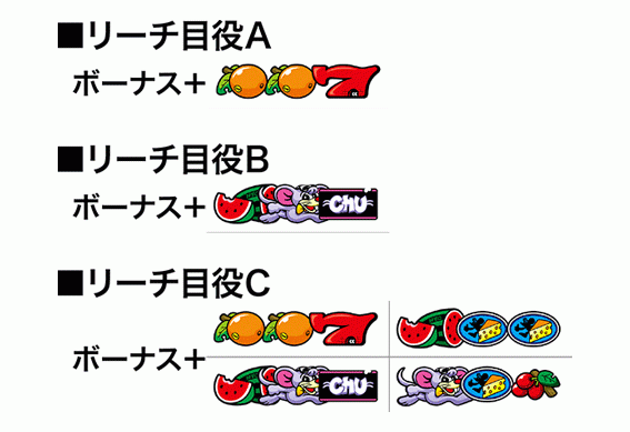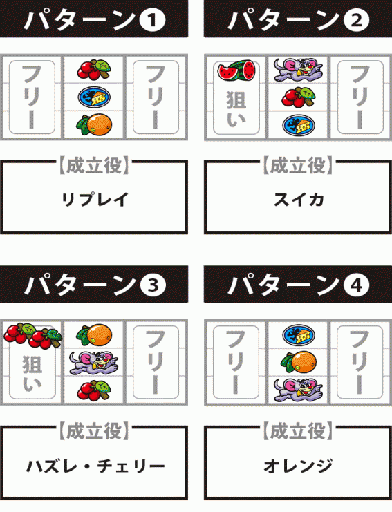 | 備考 | ★枚数調整による技術介入アリ ★斜めオレンジ確率に設定差アリ ★赤BIGとネズミBIGは別フラグ |