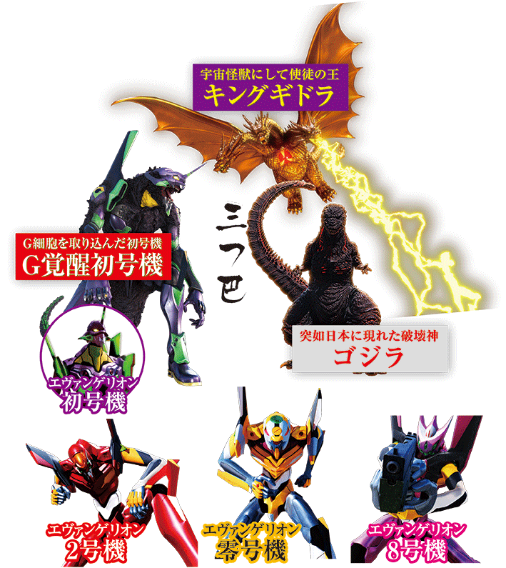 エヴァンゲリオンと使徒の戦いが続くなか、これまで眠っていたゴジラが突如目覚め日本に上陸。NERVは対ゴジラ軍事組織「G-Force」と共闘しゴジラに対抗するが、そこに奇しくも宇宙怪獣にして使徒の王・キングギドラが襲来。初号機、ゴジラ、キングギドラによる三つ巴バトルが勃発する。