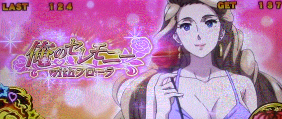 俺のセレモニーwithフローラは3G継続し、毎ゲーム30G以上の上乗せ濃厚。リプレイorレア役成立で40G以上の上乗せが確約される。また、第3停止時に脇がアップになれば40G以上、胸がアップになれば50Gの上乗せ濃厚。