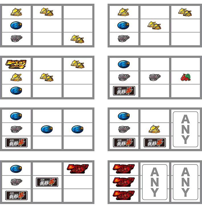 チェリーは強弱があり、派手なフラッシュが発生すれば強チェリー。ベルは強弱はなく1種類のみとなる。